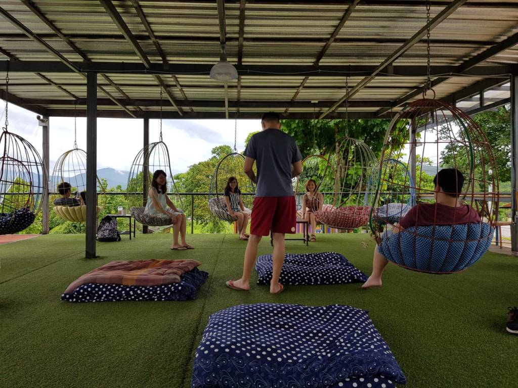 We did a quick search for other interesting cafes at Pai. We found out that there’s a place called the Container at Pai, which as the name suggests is a cafe built out of containers. We took a 1min walk down the road. As these 2 cafes are along the main road, we had to be careful as cars could be travelling at very high speed. The counter of the cafe is at level 1 while level 2 has many bean bags and seats hanging from the ceiling! Of course, we were excited! Some of us ordered while the rest went to find seats! We spent quite a long time slacking here. Sometimes, doing nothing is the best thing!