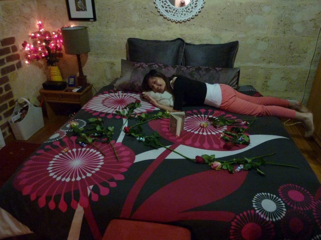 Of course, the room changed my opinion once we entered. And to my surprise, hubby had already arranged with the owner to lay flowers and chocolates on the bed to celebrate our anniversary!
