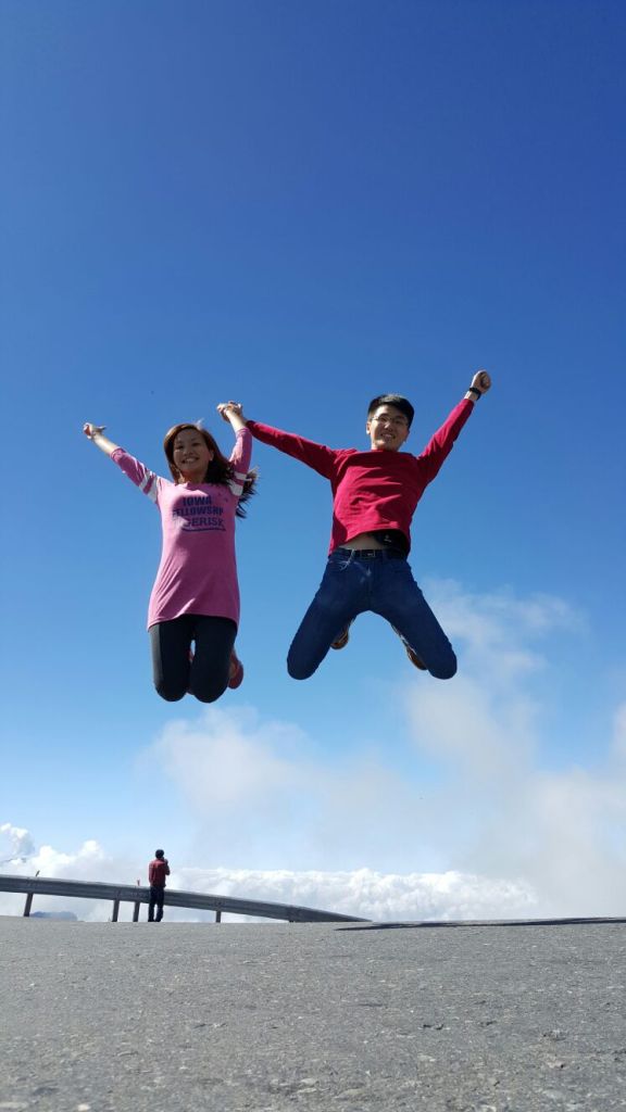 On the drive down, our driver decided to stop by the road (at a safe spot of course!) to take jump shots of us. For the effect he wanted, he practically lay flat on the road so that we appeared to have jumped very high against the blue backdrop. Kudos to his effort!