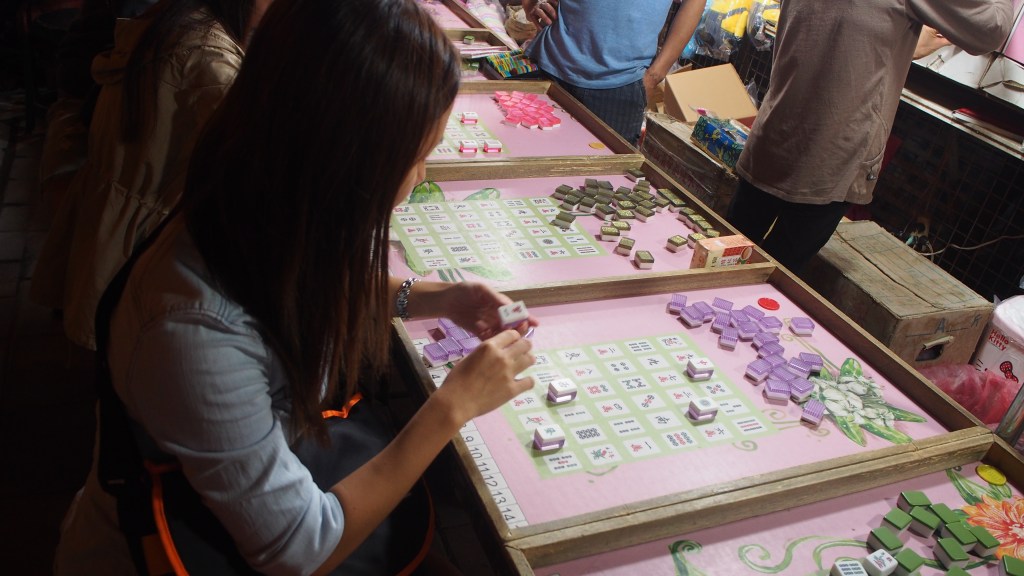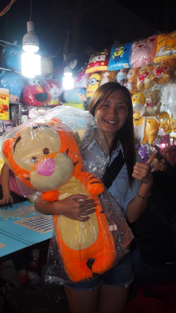 Seeing that we had some time to ourselves, we headed to Shilin Night Market for some more eating and playing! One of my favourite games at the night markets in Taiwan is the Mahjong Bingo! Years ago during our graduation trip, I won a Line Moon soft toy at that game! Since then, I started my collection of 1 soft toy per trip! This time, I wanted to try my luck.