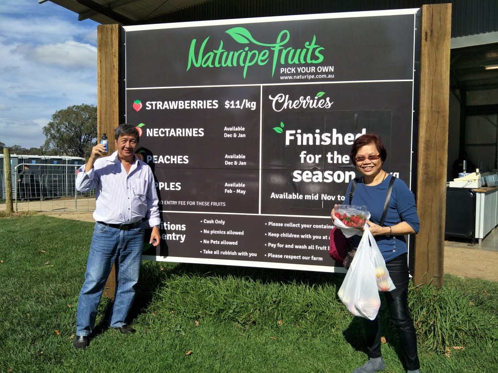 It was Autumn going Winter, only strawberries and apples were available for picking. We decided to go ahead with it nonetheless. Along the Bacchus Marsh Road, there were several fruit orchards. We randomly entered one and turned out shortly after we realised we had to pay for entrance fee even without picking any fruits. Eventually, we ended up at Naturipe Fruits which appeared rather crowded. Entrance was free and all we had to pay was for the fruits we picked. We had picked strawberries before. But it was our 1st time picking apples from the trees directly! It was so fun! And we had fruits for the rest of our self-drive!