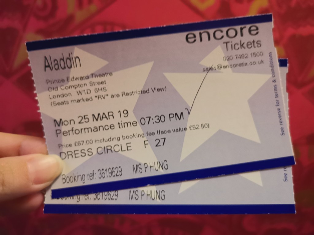 We head back to our apartment for a rest before heading out once again for dinner and Aladdin musical! It was really exciting to catch a musical at London! Every now and then, we walked past theatres and saw different musicals played there. Finally, it was our turn to sit in one! Having watched The Lion King and Wicked, as well as some others in Singapore, I had high expectations for Aladdin! However, not sure if it was due to jet lag (after so many days???), I was sleepy during the first part of the show, until the lead actor and actress started flying on the carpet. That was the prettiest scene! So magical! It was really ‘a whole new world’!
