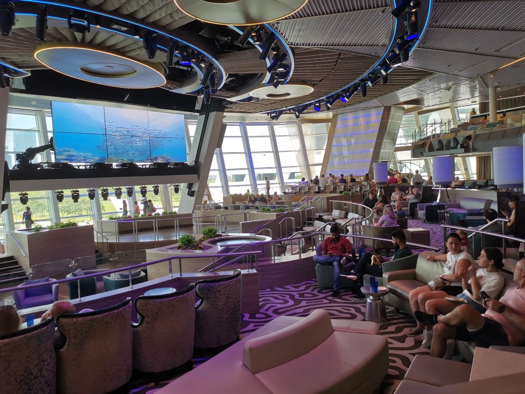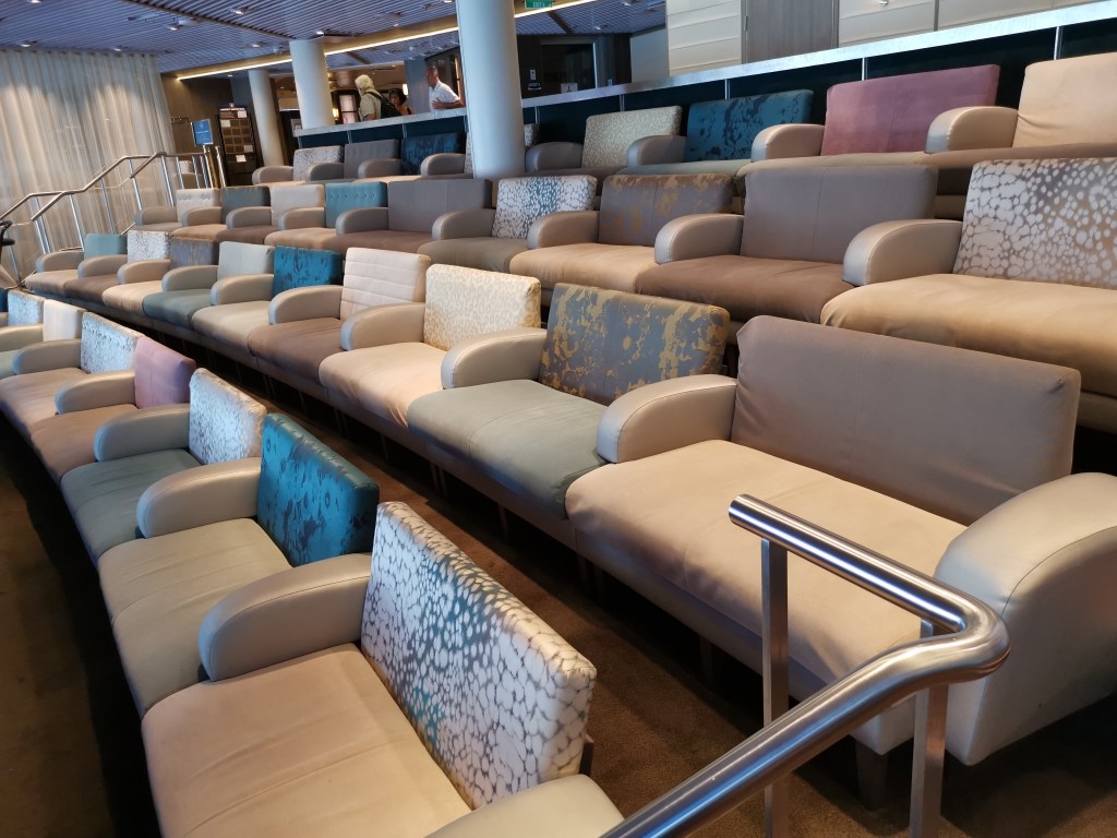 Our first goal was to find lunch. We were directed straight to Deck 14 for our buffet lunch. There was already a crowd but we still managed to get a good seat by the glass.