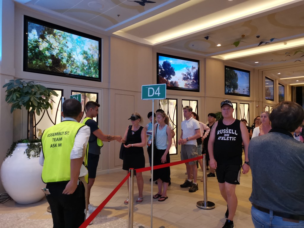 There was also a compulsory emergency drill for all passengers on Day 1. We had to gather at our allocated area and watched an emergency briefing video together. For us, our allocated area was inside a restaurant.
