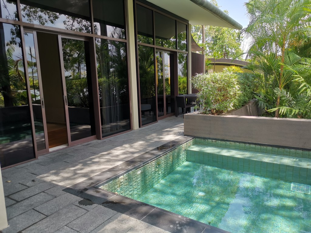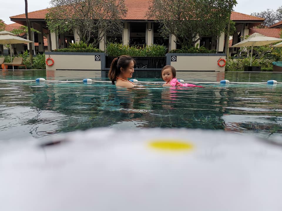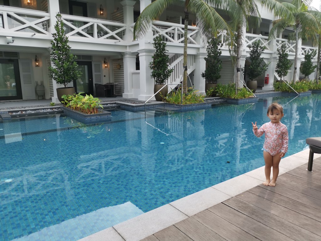 Fortunately, we were blessed with good weather the next morning! Hence, we headed out for a swim once we have washed up. It was good that we didn’t have to make any prior reservations for the pool as there are not that many guests to begin with! We had the pool to ourselves!