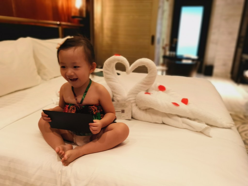 After completing our check-in on Trace Together, we were ushered into the reception which is a small cosy area and served welcome drinks and cold towels immediately. One hotel staff also surprised our girl with a balloon which she happily took over without hesitation! The balloon definitely did not cost much. But the simple gesture of helping to tie it on our girl’s hand was heartwarming.