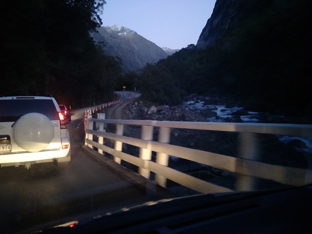 To make it for our cruise at Milford Sound at 9.55am, we woke up while the sky was still dark and had cup noodles for breakfast. It was simple yet satisfying in the cold weather! The drive to Milford sound was expected to take 2hrs. Based on experience, we usually take longer time than that. So we left around 7am so that we can take a leisurely drive there.