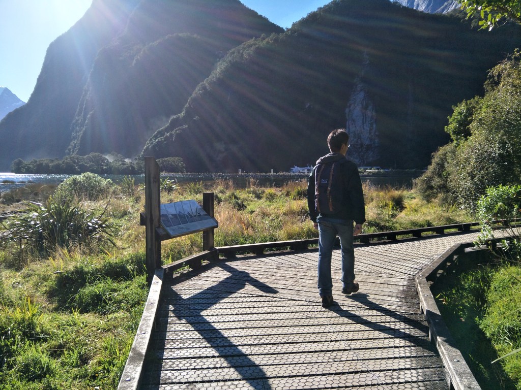 There was a one-way tunnel which we had to pass. Cars on each side had to follow traffic signals. It was quite an experience driving in that tunnel. We arrived safely at Milford Sound shortly after. I had to say, it was freezing cold! From the car park, we had to walk on the boardwalk for another few hundred metres to the cruise counters. Once we had registered ourselves for it, we walked back to the visitor centre next to the carpark and bought ourselves hot drinks which turned cold very soon as well.