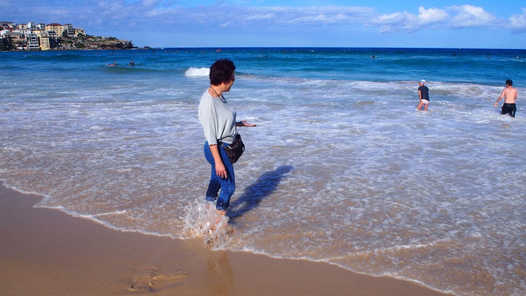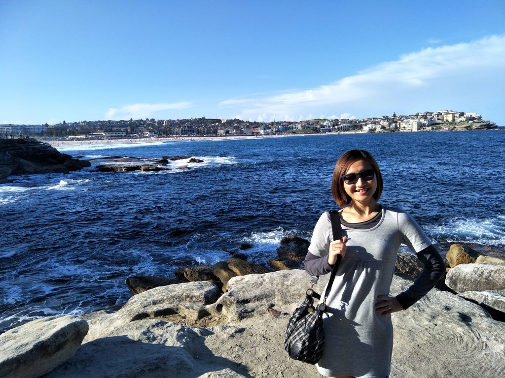 The Bondi Beach was actually much more appealing to me than the shops and food. We went back to car where I quickly changed to slippers for a stroll on the beach! The sand was cold and super soft. Erase the memory of those sand we have in Singapore!