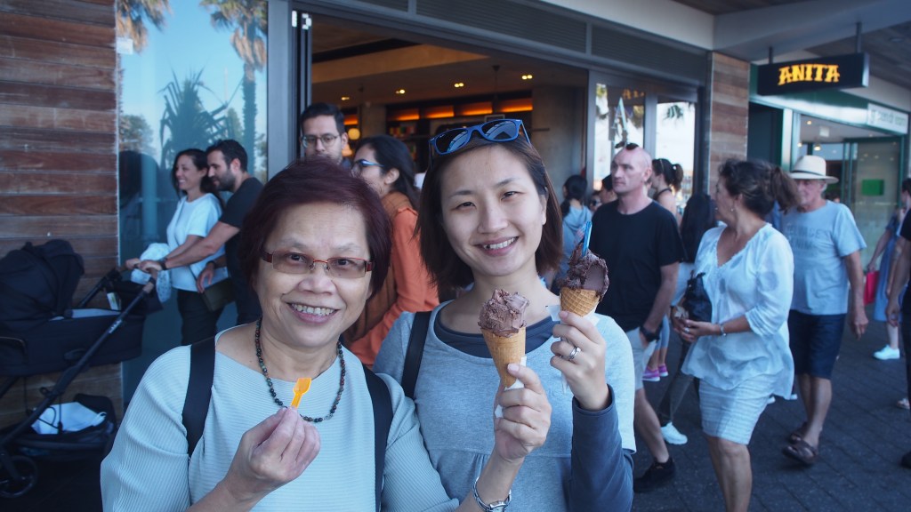 From the airport, it was less than 30mins to Bondi Market. As it was a Sunday, stalls were opened by locals selling food, fresh flowers, handmade crafts etc. It was not easy to find a parking space. We were lucky to find one near the beach. Feeling hungry, we decided to have lunch first at 1 of the restaurants facing the sea! Rule of thumb: Never let anyone in your group get hungry because a hungry man is an angry man!!! After dinner, we chanced upon a popular ice-cream stall with very long queue!